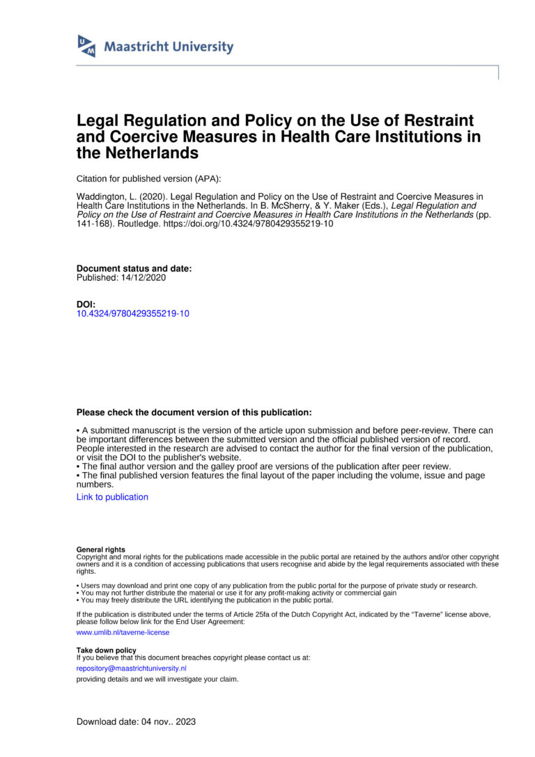 Legal Regulation and Policy on the Use of Restraint and Coercive Measures in Health Care Institutions in the Netherlandsfevereiro 16, 2024 Leia Mais