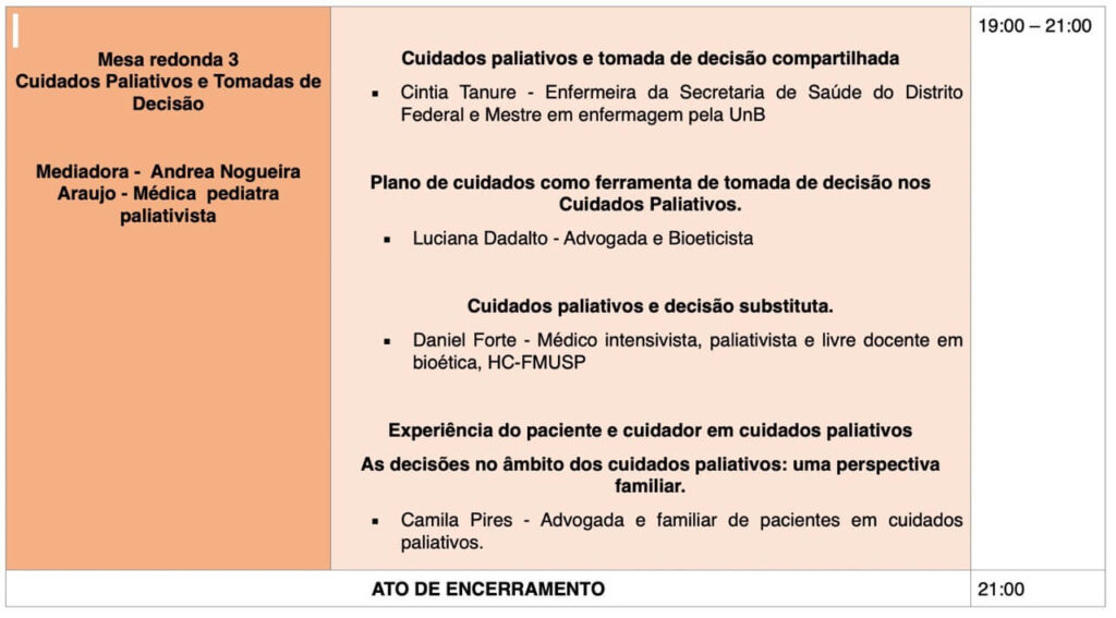 O I Simpósio de Bioética e Tomadas de Decisão nos Cuidados em Saúde tem como objetivo analisar os aspectos éticos dos distintos modos de Tomada de Decisão nos Cuidados em Saúde: Tomada de Decisão Apoiada, Tomada de Decisão Substituta, Tomada de Decisão Compartilhada e Tomada de Decisão Antecipada para pacientes crianças, pacientes idosos e pacientes em cuidados paliativos.